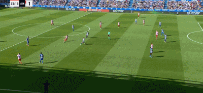 第34分钟,阿尔瓦雷斯原地转圈摆脱防守,内切一步打门击中防守球员