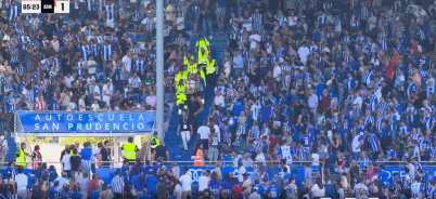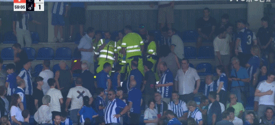 第60分钟,看台有球迷出现异常状况,比赛暂时中断
