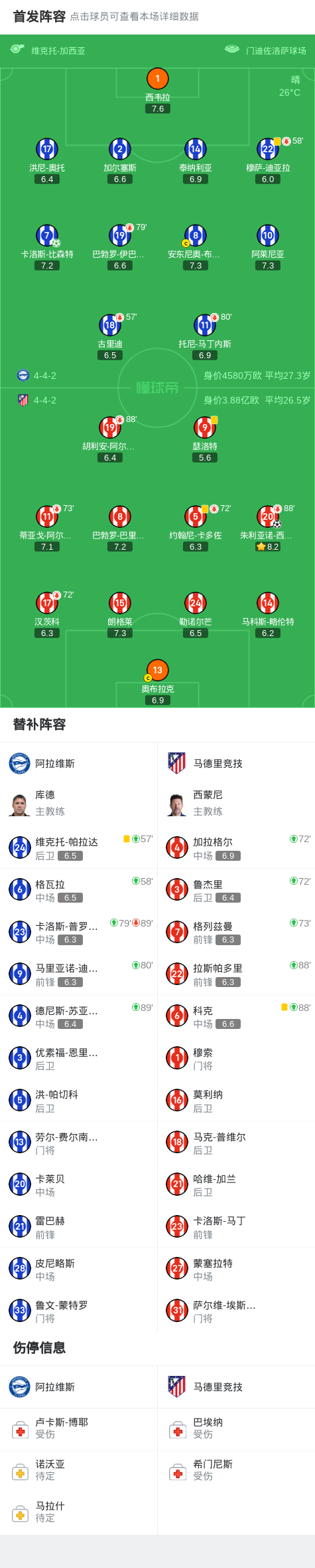 第88分钟,马竞换人,拉斯帕多里、科克登场,换下阿尔瓦雷斯、小西蒙尼